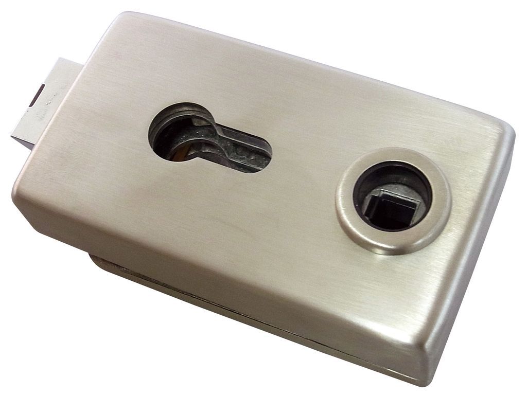 ID750RB Замок для стеклянных дверей прямоугольной формы под установку цилиндра и нажимной ручки.